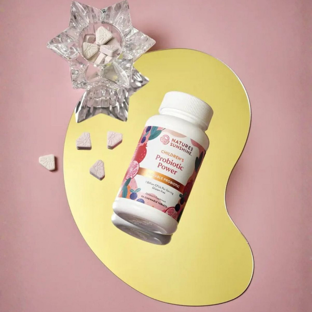 Cada comprimido mastigável contém um bilhão de bactérias vivas de 11 estirpes cuidadosamente selecionadas, incluindo Lactobacillus e Bifidobacterium, conhecidas pela sua capacidade de fortalecer a barreira intestinal e inibir o crescimento de microrganismos patogénicos.